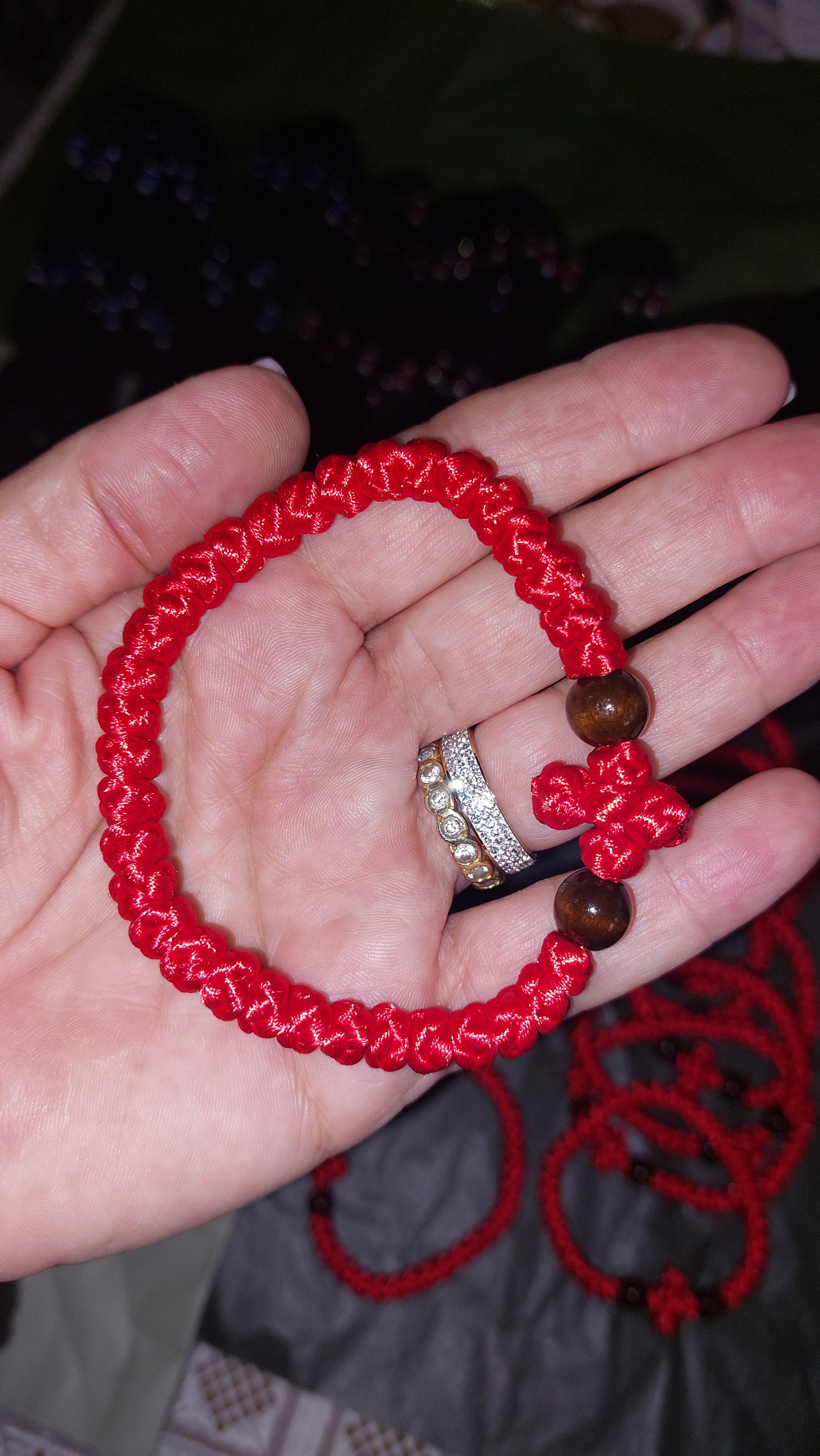 Κομποσχοίνι καρπού σε κόκκινο χρώμα ευλογημένο στην εικόνα του Αγίου Παϊσίου του Αγιορείτη στο παρεκκλήσιο μας στην Κω.